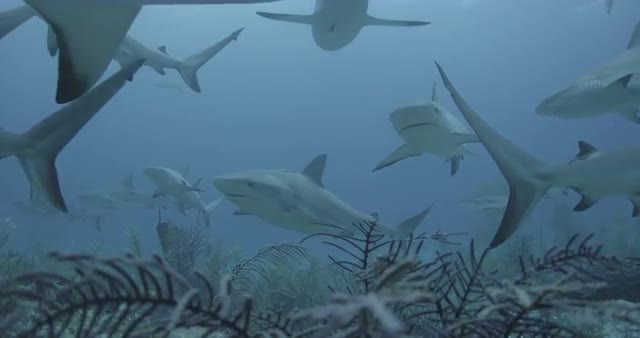 School of fish swimming near the ocean floor.
