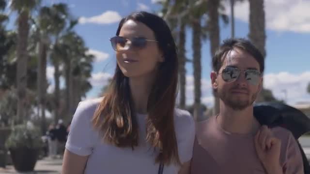1089218 - A smiling couple walking on a beautiful Valencia street