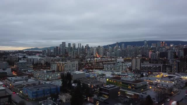 1361648 - Closing shot of Vancouver downtown with commercial buildings in front