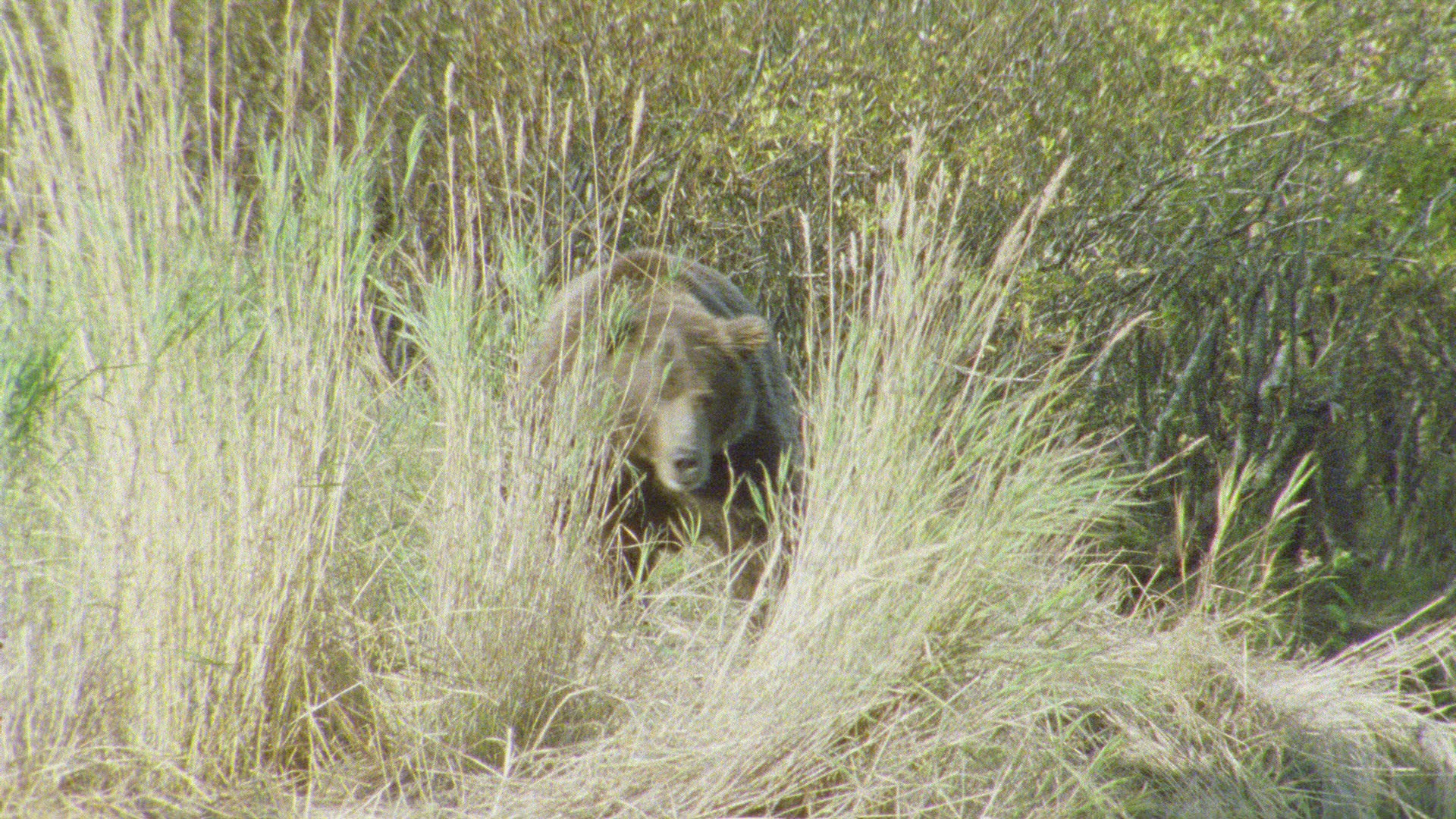 A grizzly bear chews leaves in the Canadian Rockies near Lake Louise. Original 4K+ resolution file available upon request.