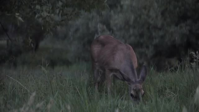 Deer grazing in the shadow of the massive Yosemite Valley.