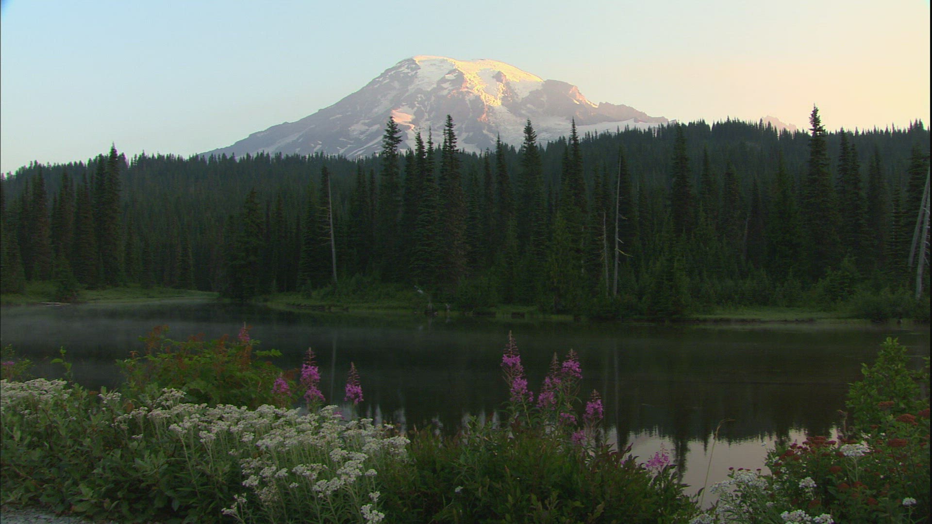 January20062000-200921st CenturyMount RainierMountainMountainsMountain LandscapeMount Rainier National ParkNational ParkSancutaryWashington (U.S. State)Pacific NorthwestWest Coast (USA)USANorth AmericaAmericaConiferous ForestForestTreescapeReflectionLakeBody of WaterSnowEveningHorizontal PanPan (Camera Movement)Long ShotSunshineWeatherLockdownEye LevelStock FootageOutdoor ShotColour (Shot attribute)Real Time487397903487-397-903