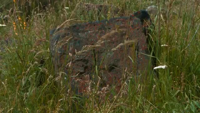 430209 - Old Stone Carving Surrounded by Grass