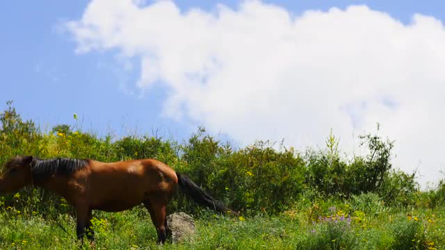 430273 - Horse Eating Grass with Blue Skies