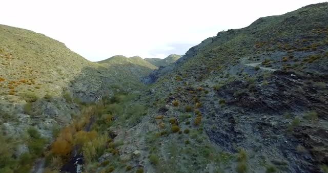 2141740 - Aerial shot of river flowing through rocky canyon in forest