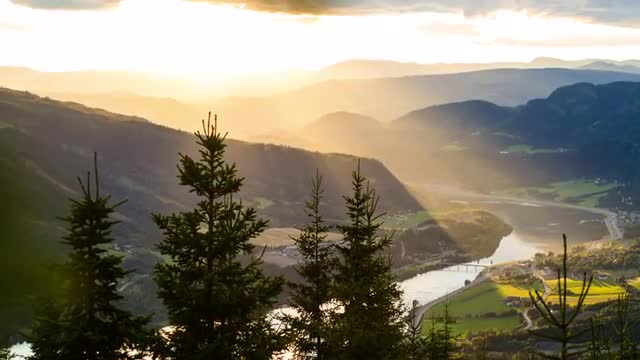 92151 - Timelapse shot of the sunrise seen over Emerald Bay and Nevada desert with lens flare
