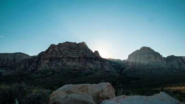 92153 - Timelapse shot of the sun rising over the mountains at the Nevada desert with lens flare