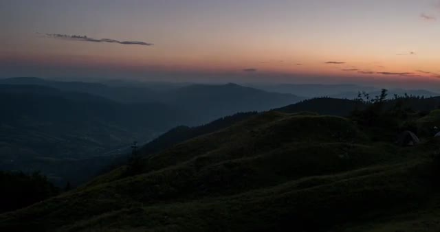 601494 - Carpathian Mountains Landscape View Pan Time Lapse. Tourists Camp at Sunset
