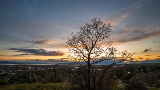 620146 - Time Lapse Viewing Tree against the Horizon at Sunset