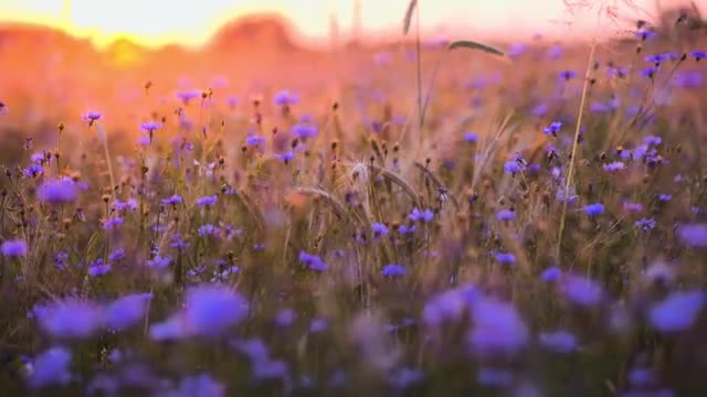 Slider shot of flowers in field at sunset