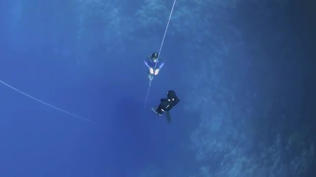 A freediver comes up from a deep dive in the Blue Hole in Dahab, Egypt during a competition.