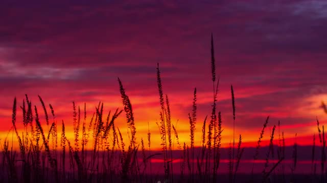 An abstract rural setting with bright vivid clouds, static timelapse.