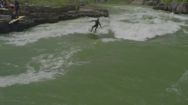 A river surfer makes smooth turns on a natural wave of the Snake River.