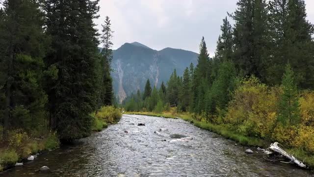 801939 - Fog Over Forest River at Dawn.restoration of Autumn Trees in the Water. Slow Flow.
