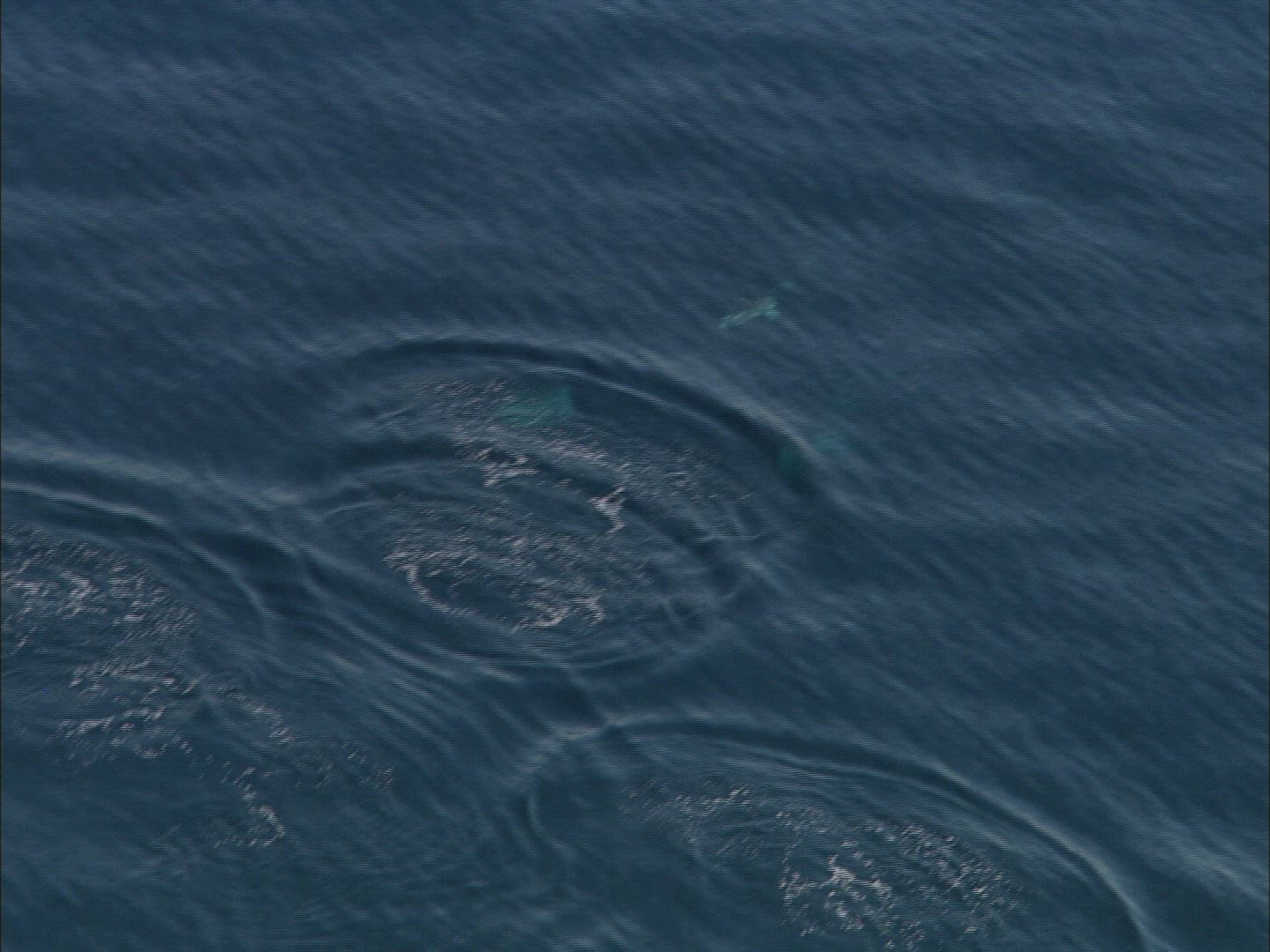 > Aerial shot following a family of Peale's dolphins also know as Lagenorhynchus australis