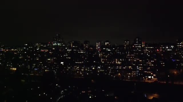 > Aerial view of Vancouver city in the night