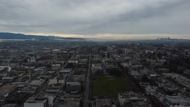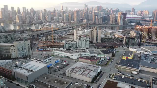> Granville bridge and street with the view of Vancouver downtown from the above