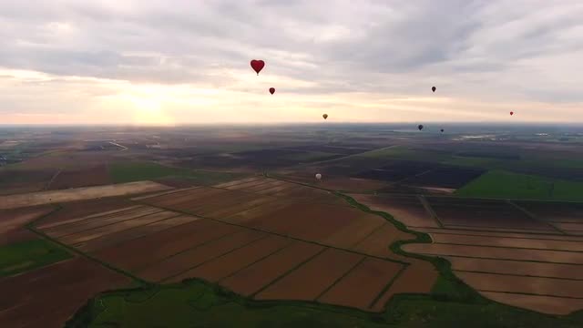 752195 - Hot air balloons in the sky over a field.Aerial view