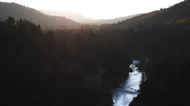 > River and backlit forest, long dolly right