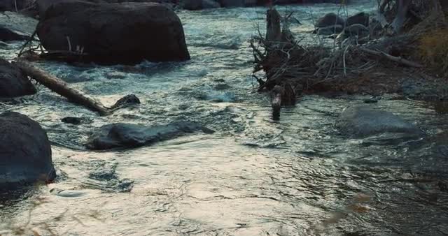 > Wild river water flow, long tilt