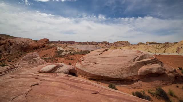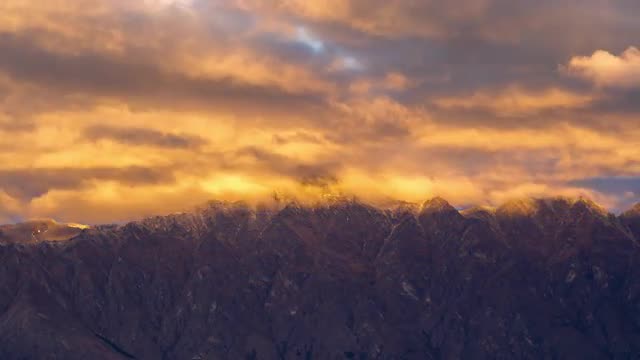 > Landscape shot above low lying white fluffy clouds, showing the clouds rolling