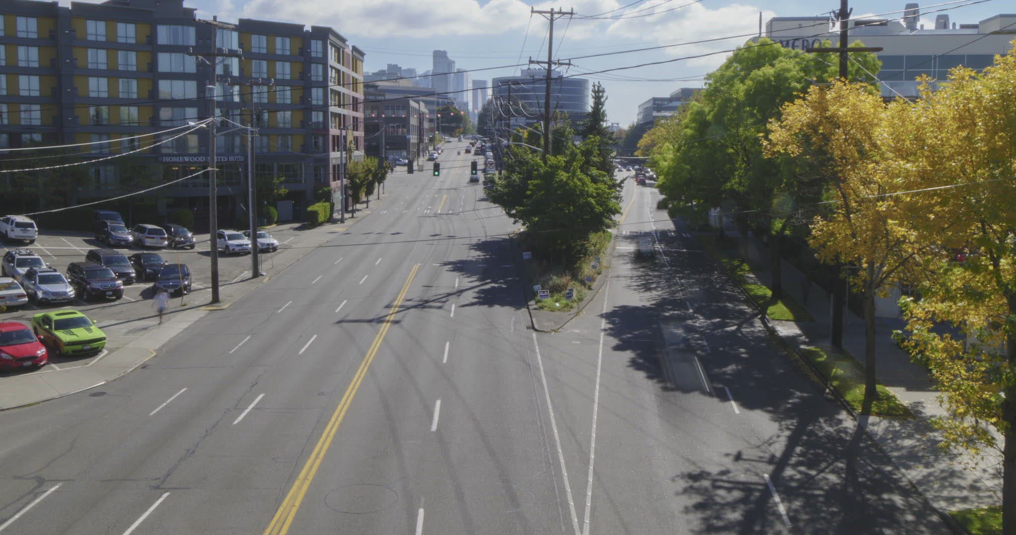 A seemingly empty Seattle during the covid lockdowns. Peaceful and quiet during this sunrise timelapse with a small crescent moon and Mount Rainier in the background. 6k.