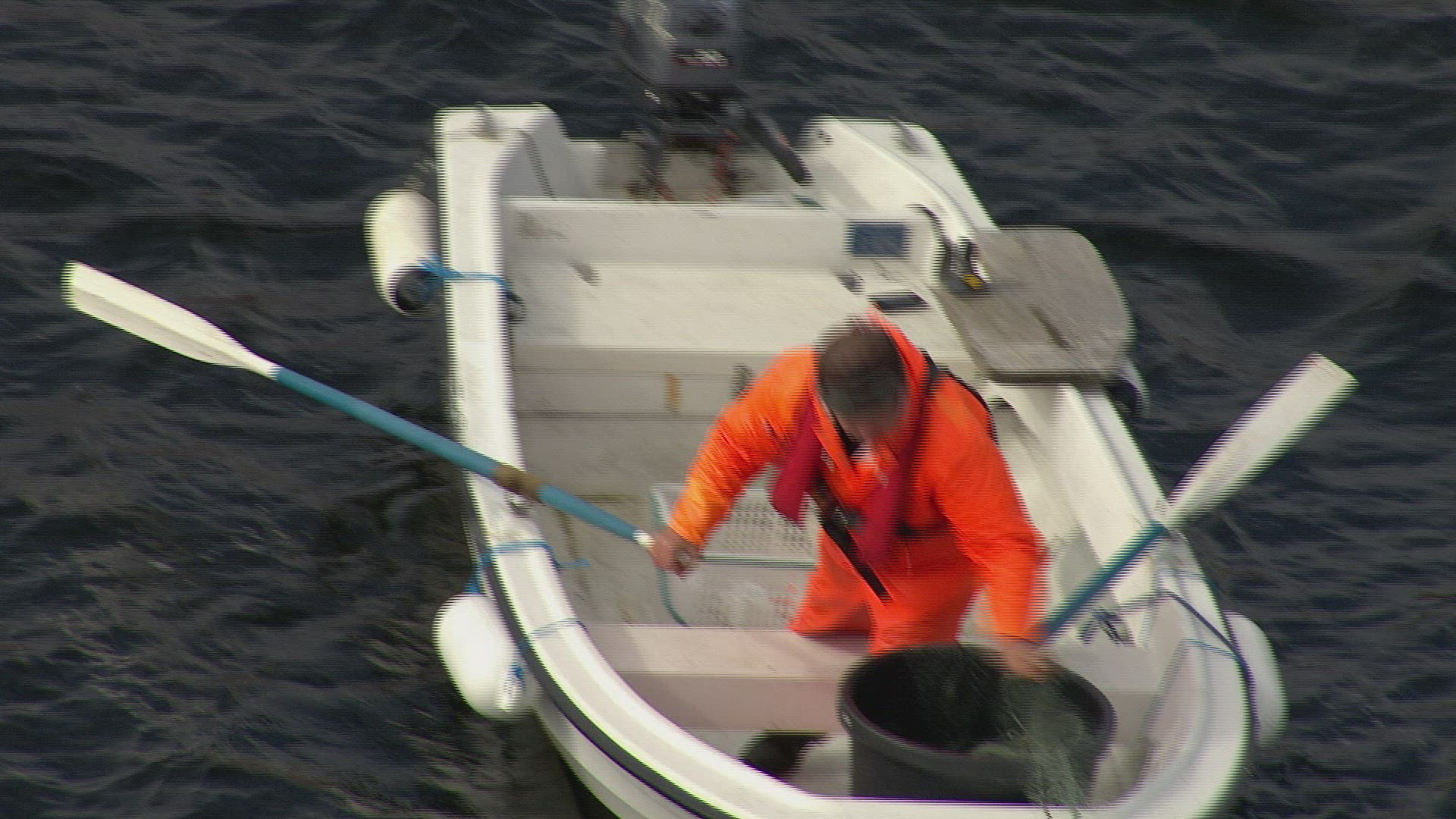 2271007 - man and woman net fishing from row boat.mp4