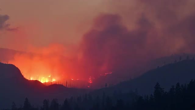 > Smoke rising on mountain in Utah during wildfire