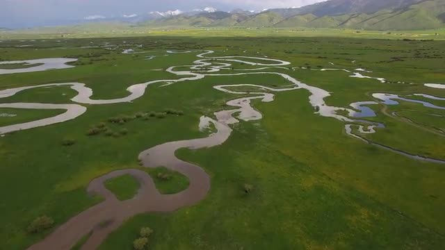 991097 - Winding river flowing through green valley in Wyoming