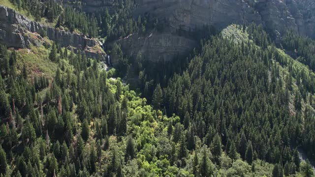 Flying over color scenery in Provo Canyon during Fall in Utah