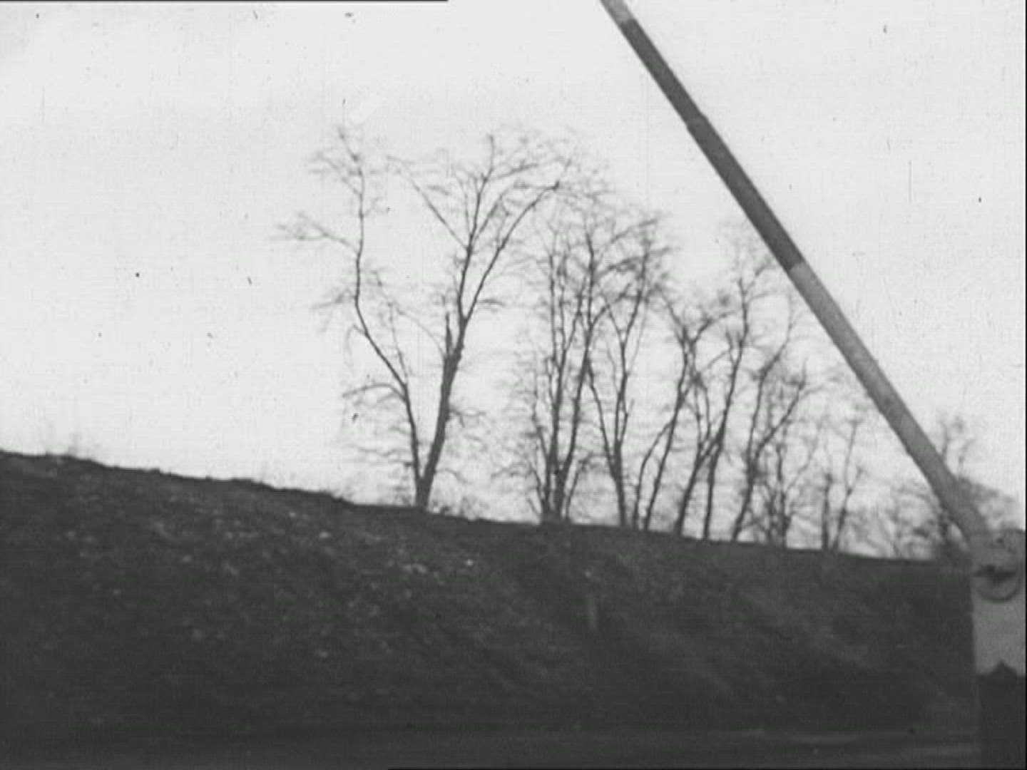 United News; President Kalinin, Marshall Voroshilov, and Stalin review a parade in Moscow. Intertitle: GIGANTIC PARADE MARKS MAY DAY IN MOSCOW.