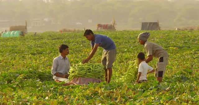 Kakri (Indian Cucumber), and Ghiya (Bottle Gourd) farmers work with the Taj Mahal as their backdrop. This farmer is finished with a batch of vegetables, and is walking to the main street to sell them.