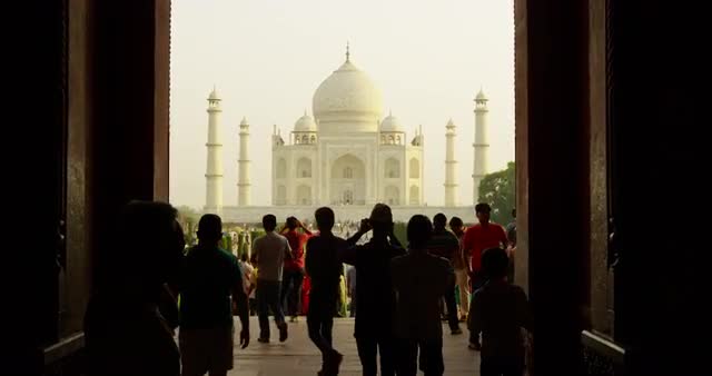 Tourists take their first photos of the Taj Mahal