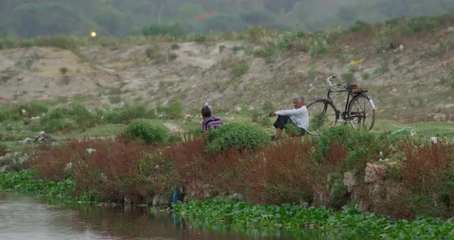 > Two Indians Relaxing Near The Yamuna River