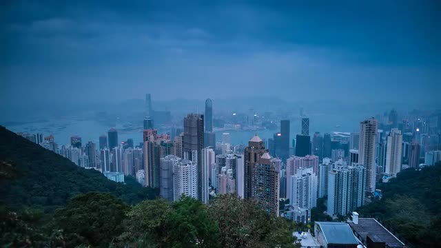 Day to Night Time Lapse of Hong Kong City from Victoria Peak