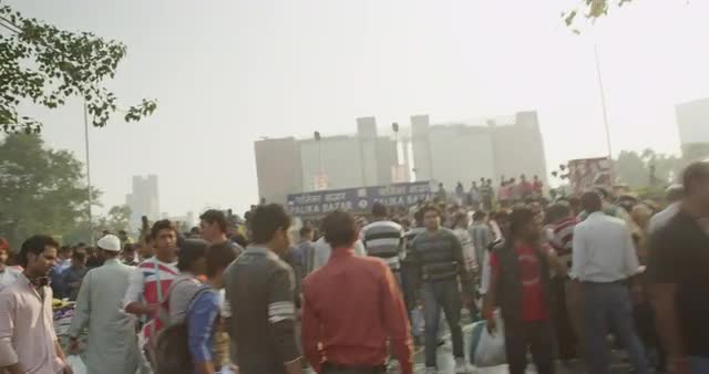 Point of view of a person walking through crowds at Palika Bazaar.