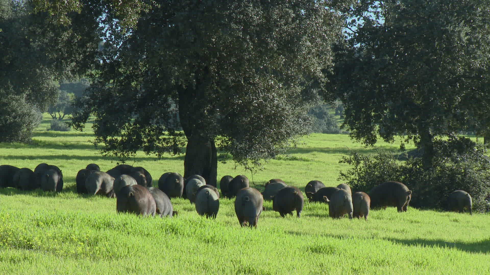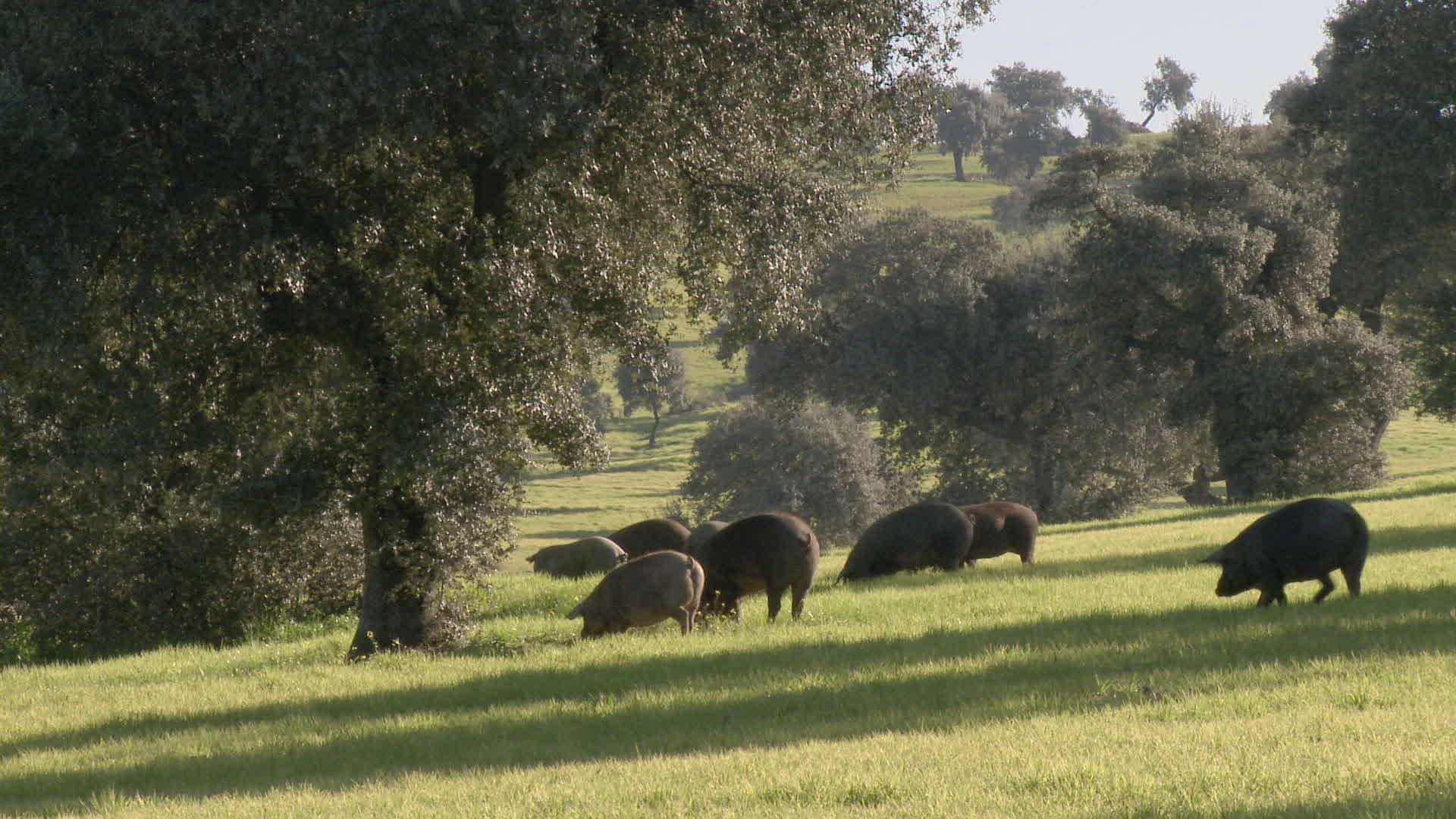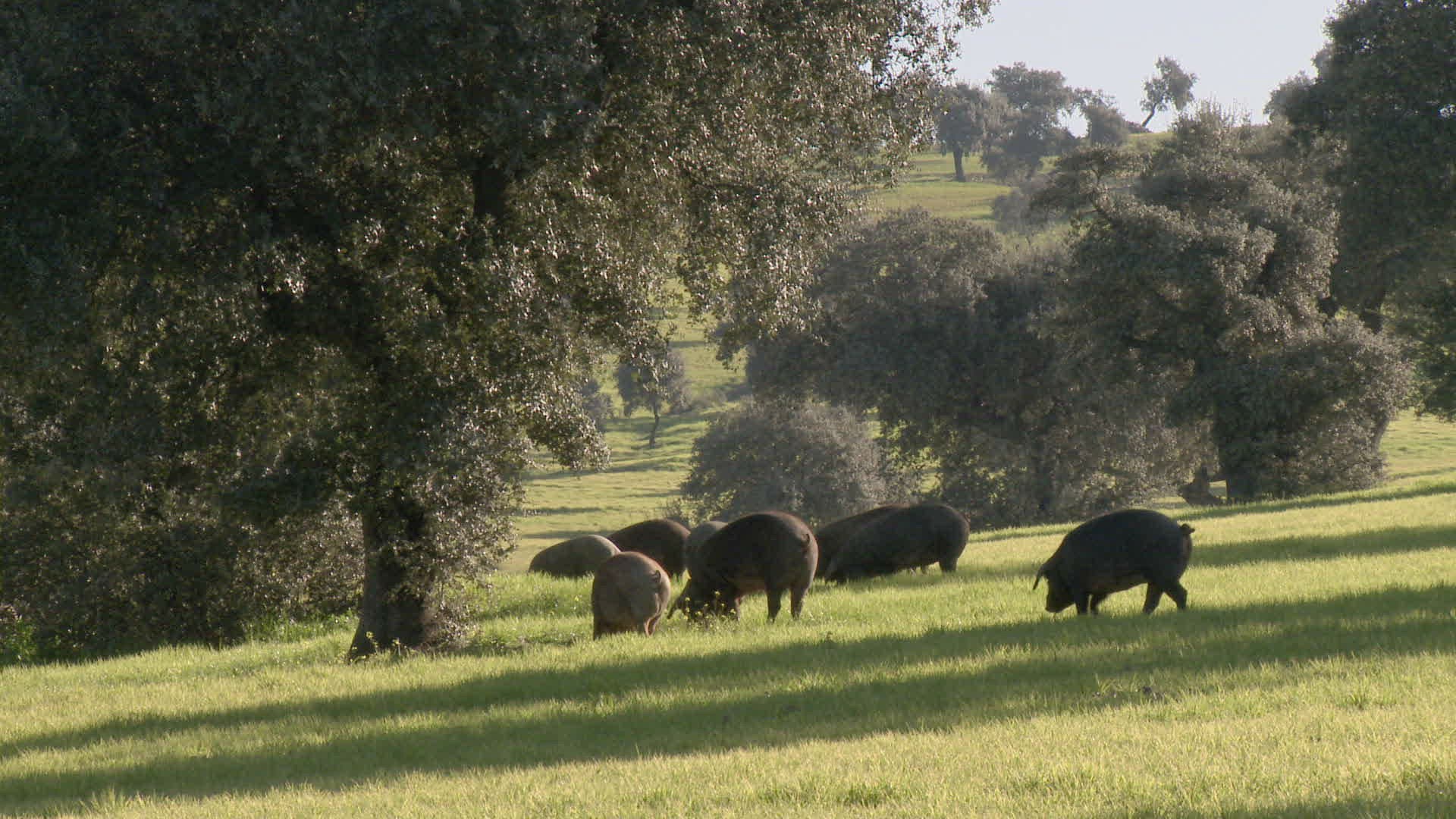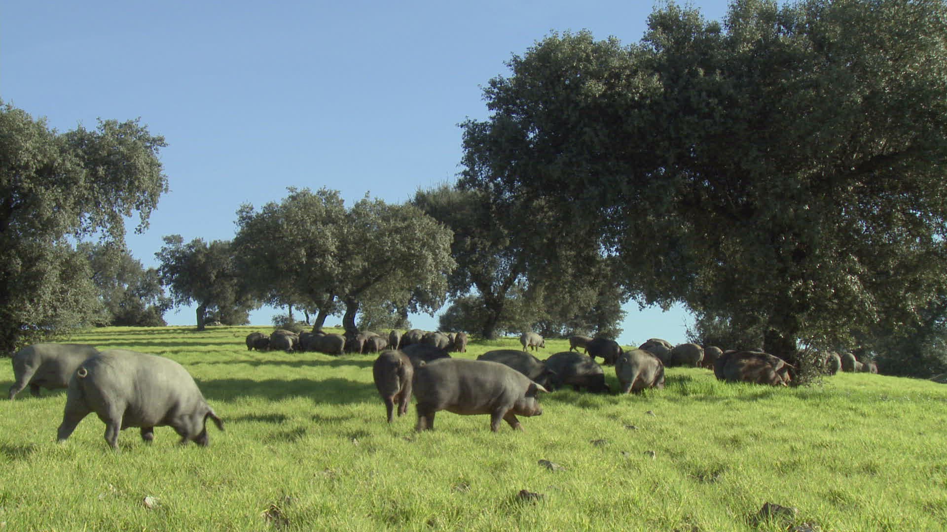 > 505701447 / Black Iberian Pig / Eating / Dehesa