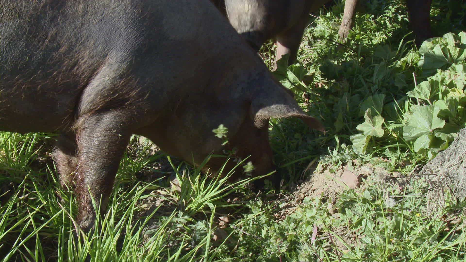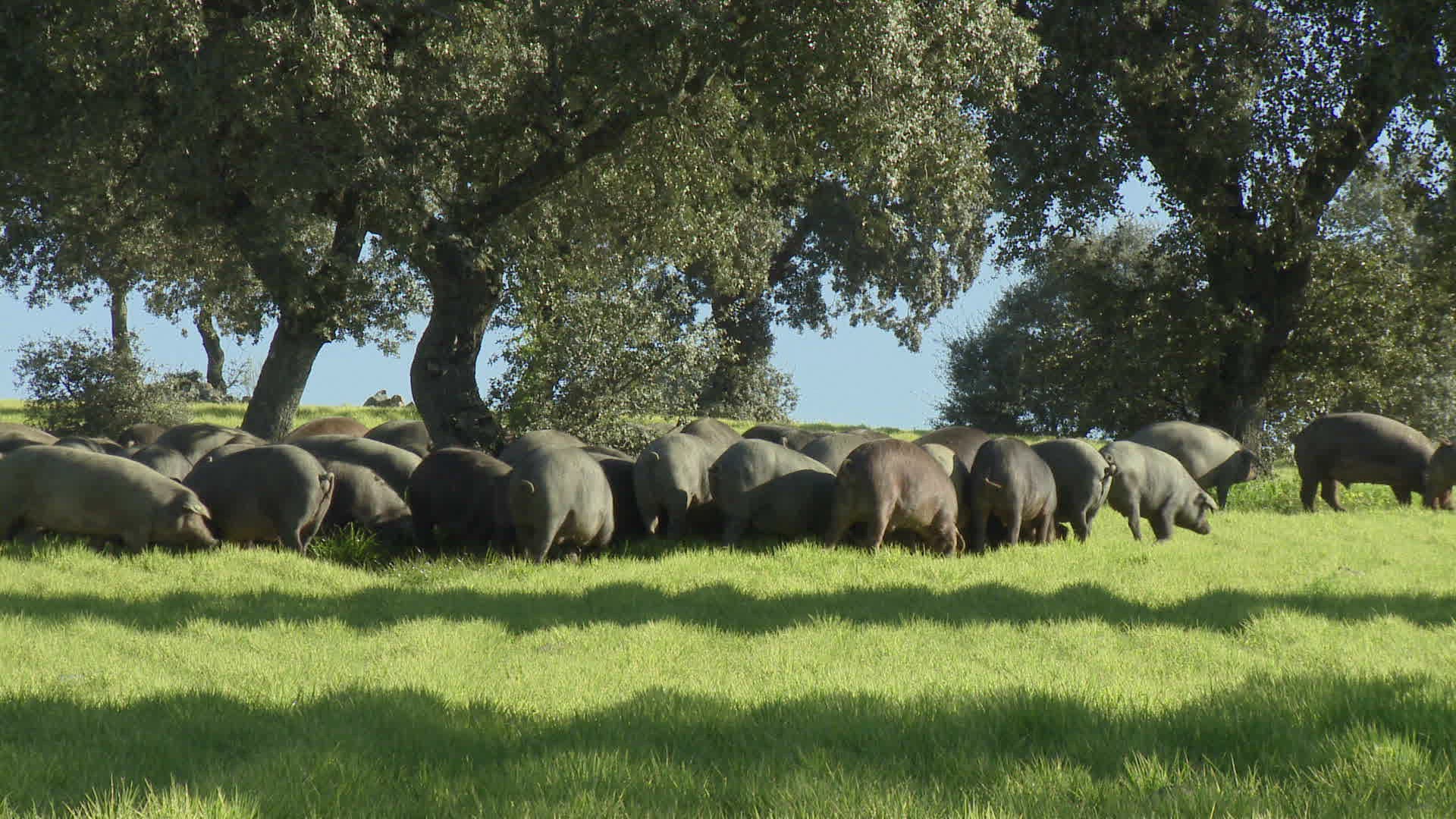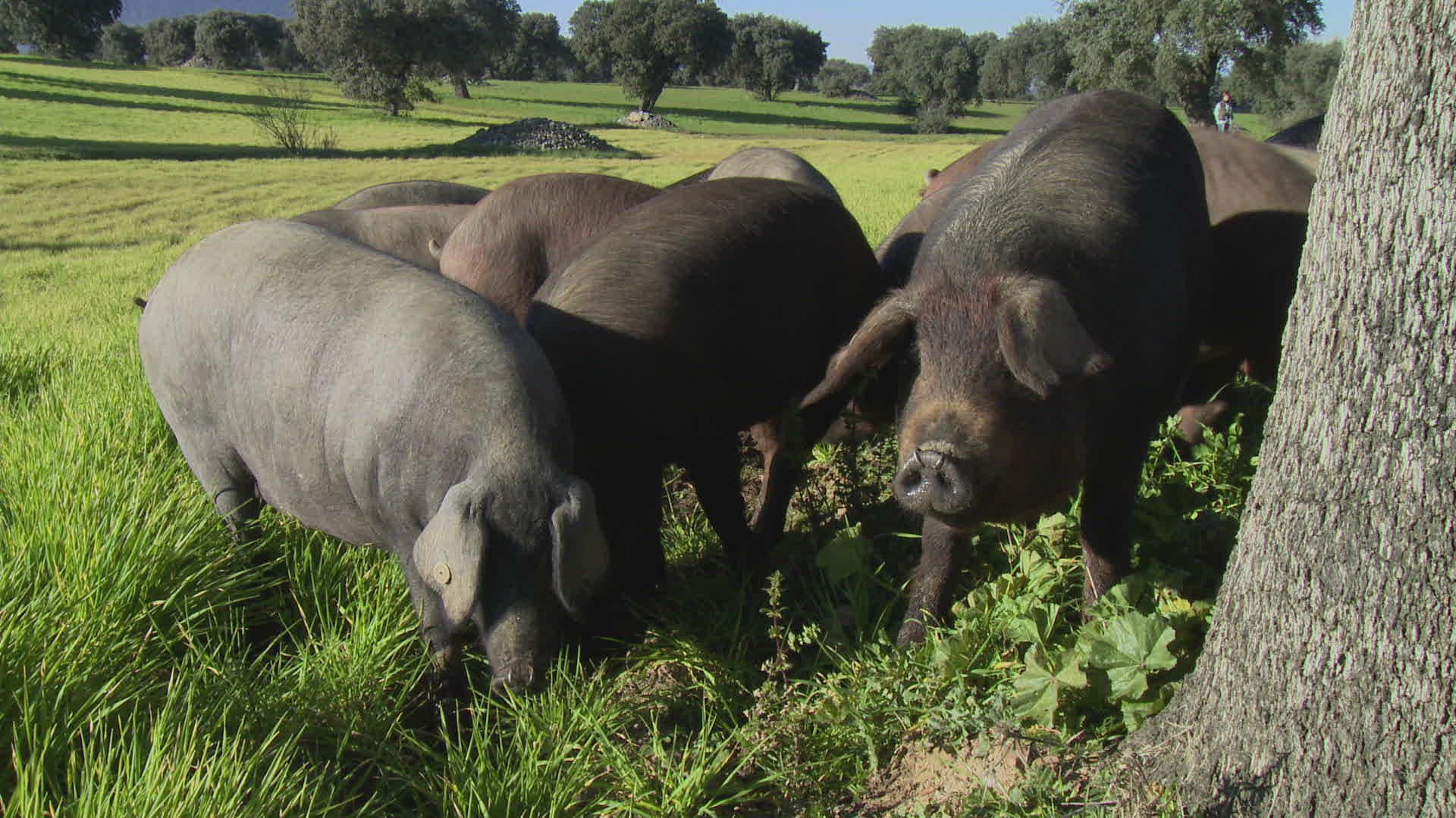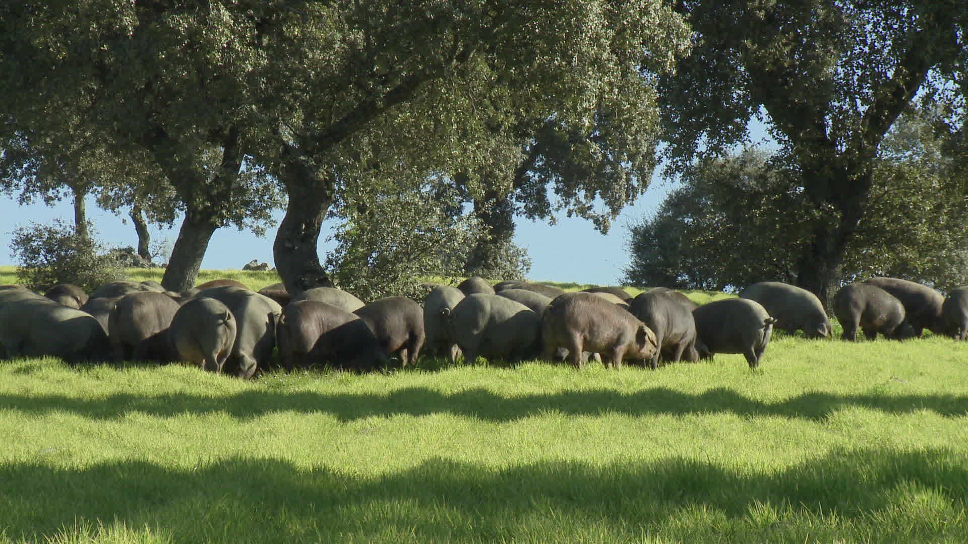 > 505701447 / Black Iberian Pig / Eating / Dehesa