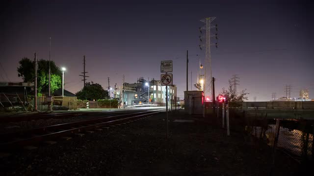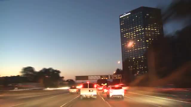 Los Angeles Traffic at night. City view from Griffith Observatory with Fog/Clouds passing over the city.