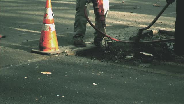 Construction worker using a jack hammer on the street