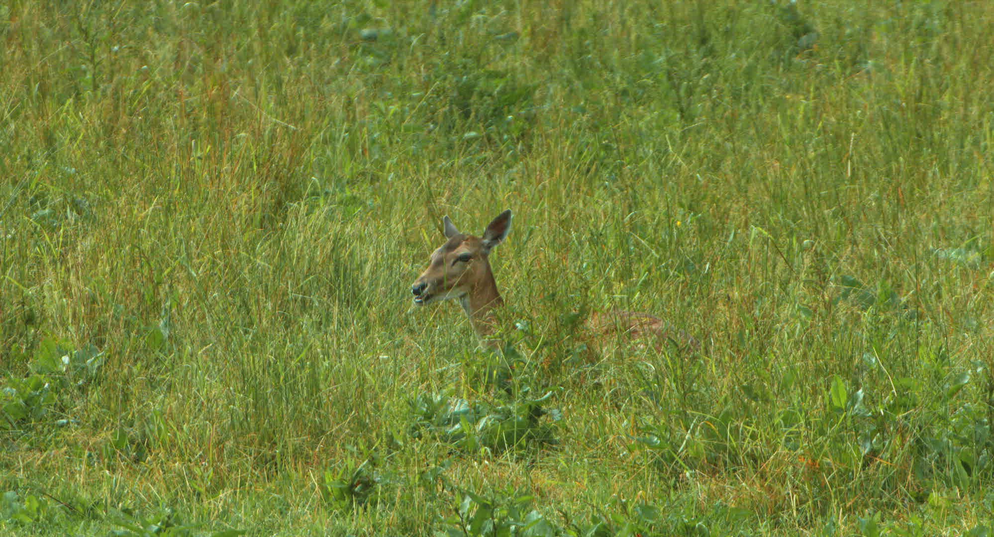 The female Sika Deer is carefully watching the surrounding area while waiting for the birth of her fawn. Austria, June 2015, Stock Footage, photo, 4K, Raw,