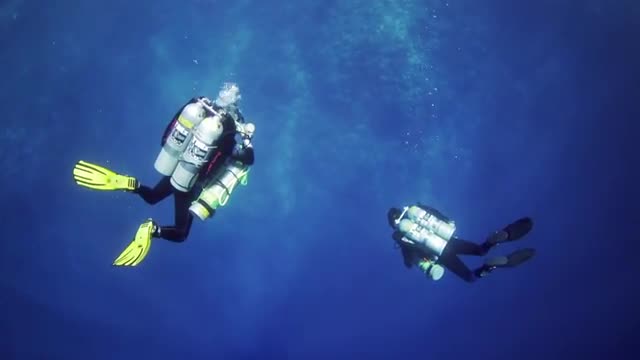 Two Tek divers start their dive into the Blue Hole just outside Dahab, Egypt.