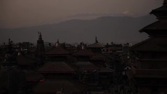 197912 - Nepal Sunset with Temples and Mountains