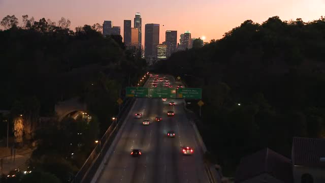 Long Lens shot of DwnTwn LA CityScape Sunset
