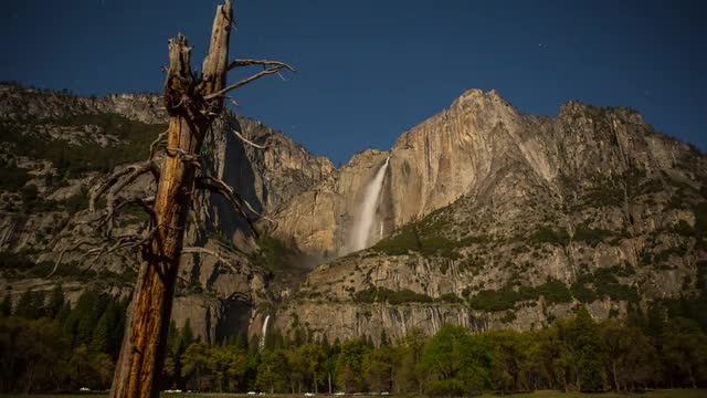 Yosemite Falls during full moon.
