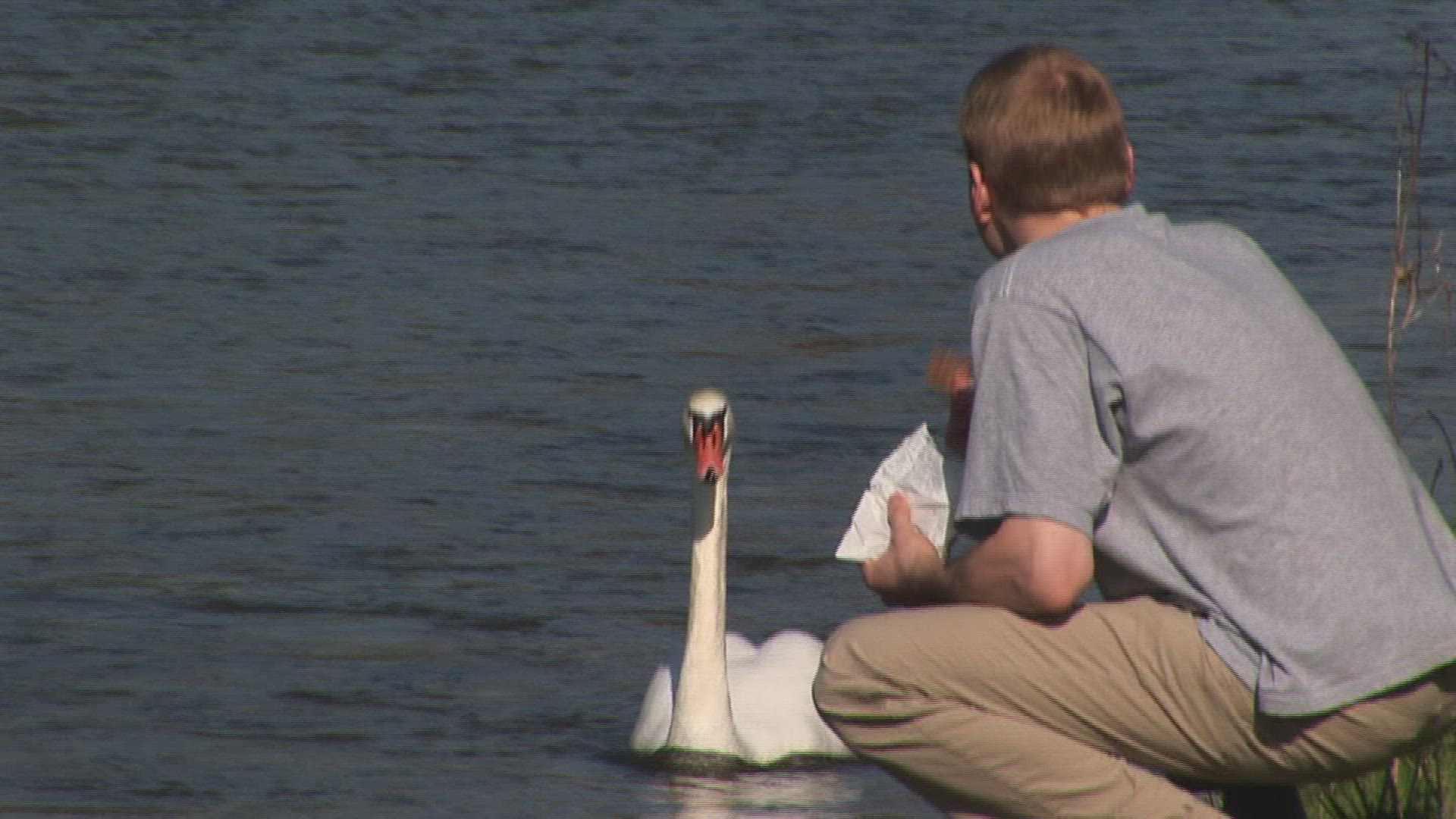 308085418 / Man / Swan / Feeding / Germany