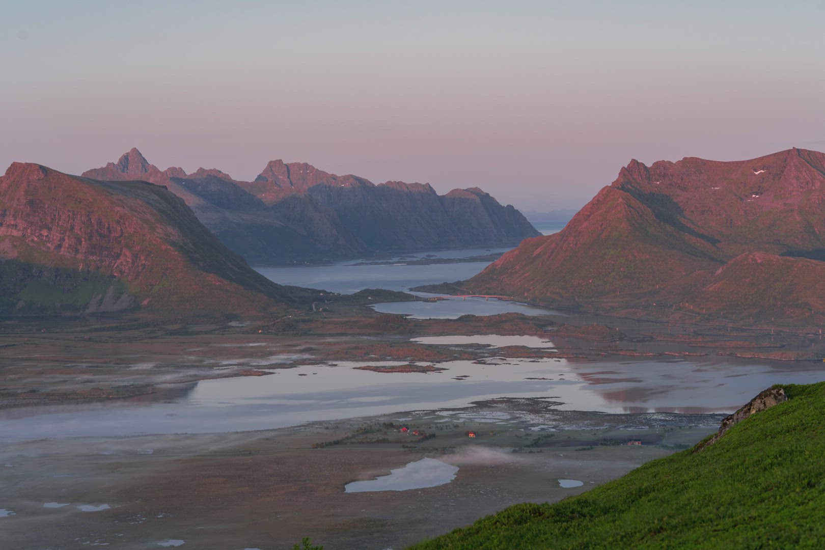 2120739 - Timelapse of fog moving in the fjords of Lofoten under the midnight sun