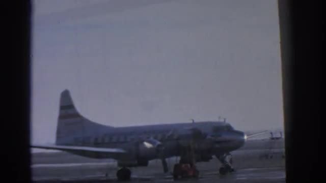 Airplane propeller spinning. Amelia Earhart gets into plane. Plane flying. Amelia Earhart gets out of plane.