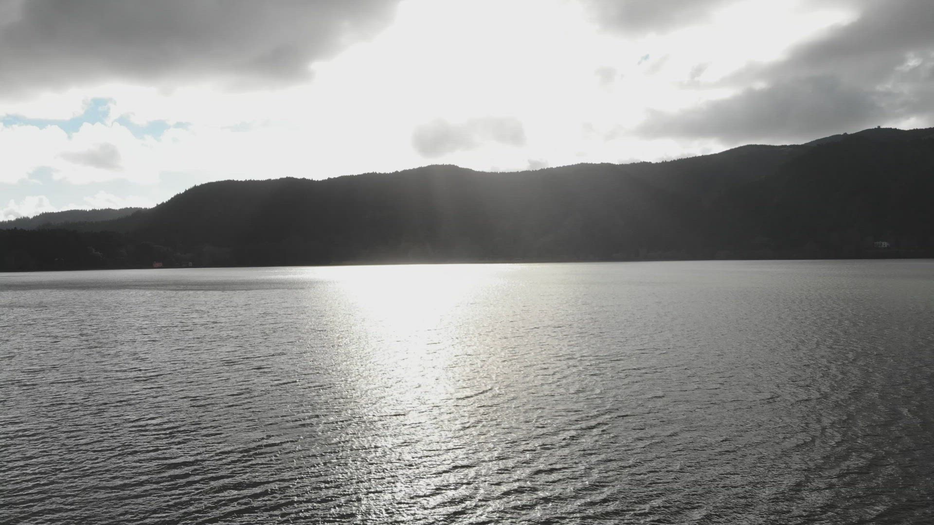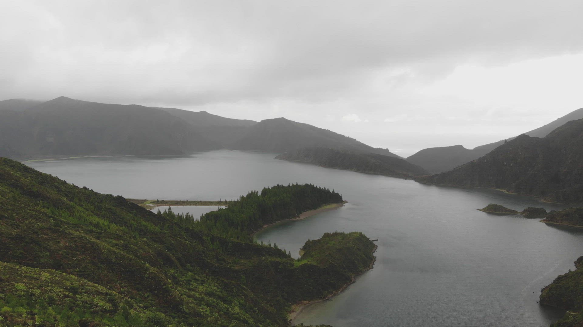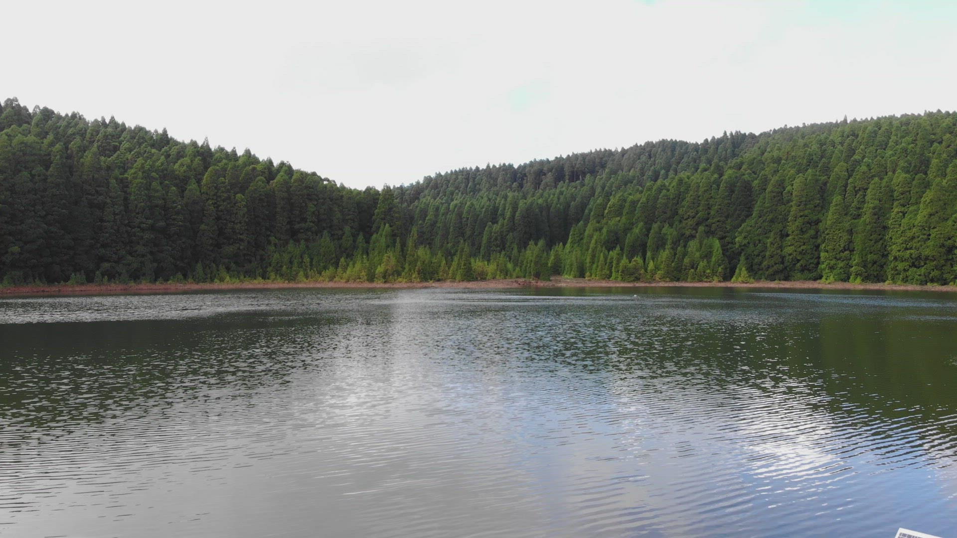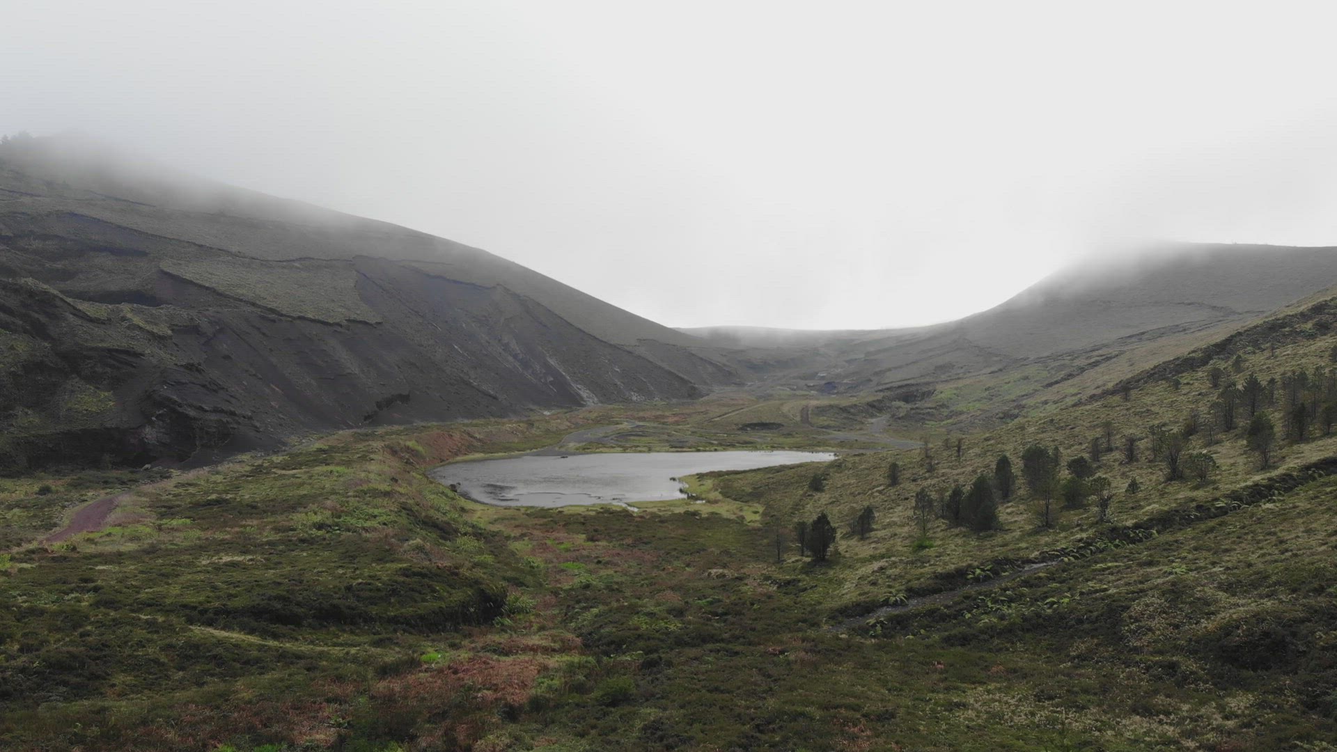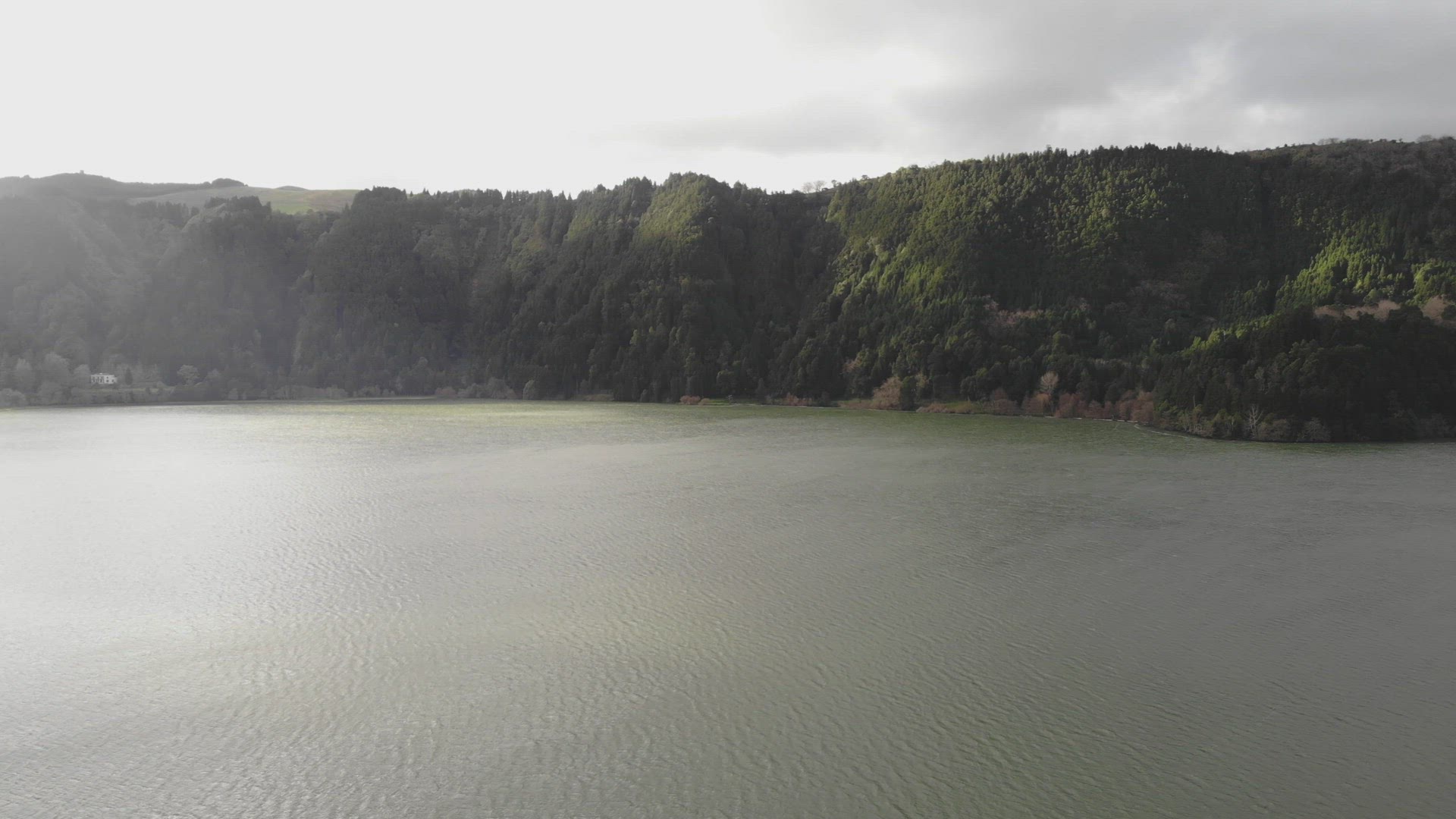 Green landscapes of a lagoon inside an old volcanic crater in lagoa das Setes Cidades, in São Miguel´s Island, Azores -Portugal.