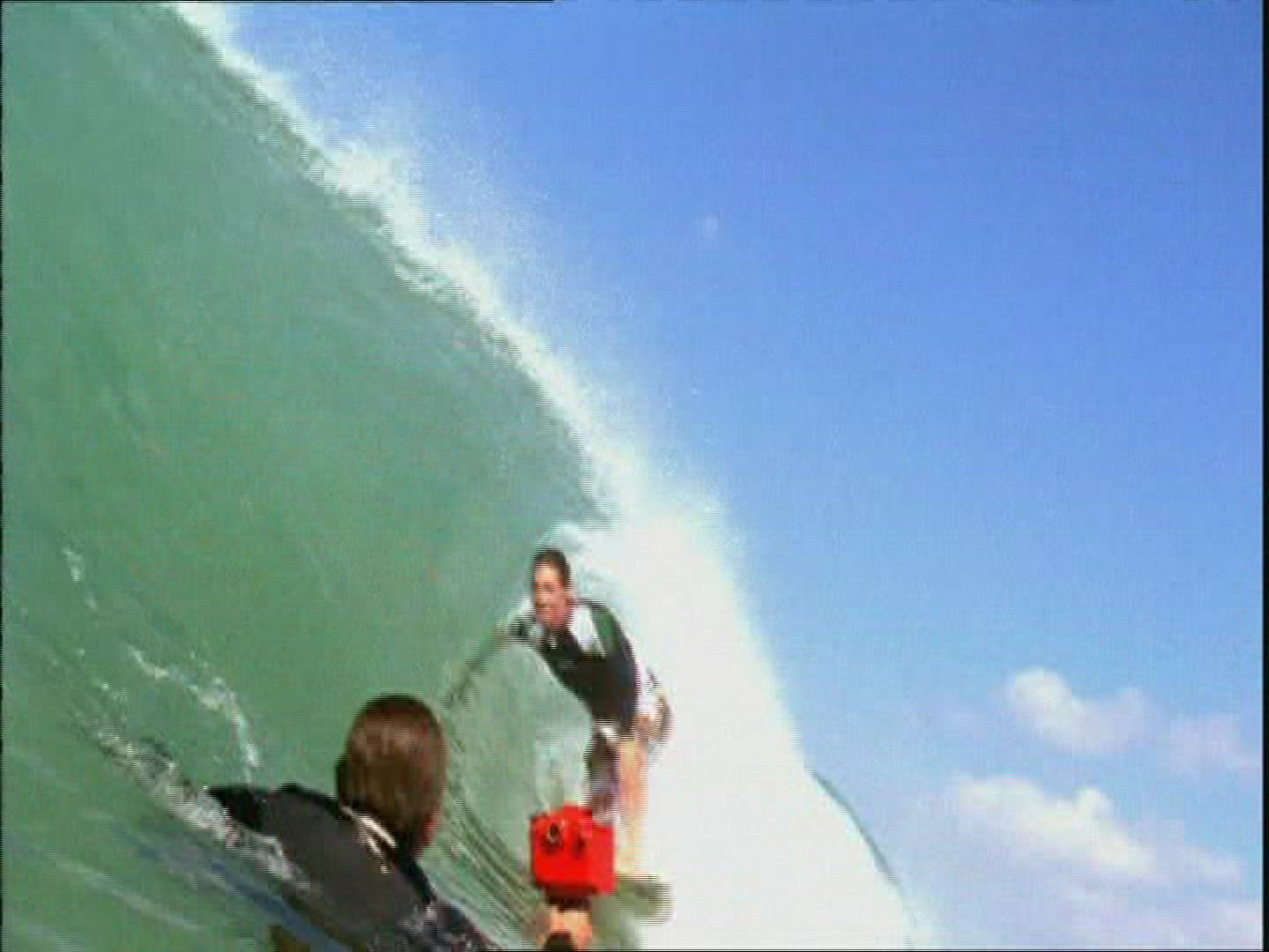 2335883 - Magical view of man pointing out across wave at sunset, view from water ocean surface